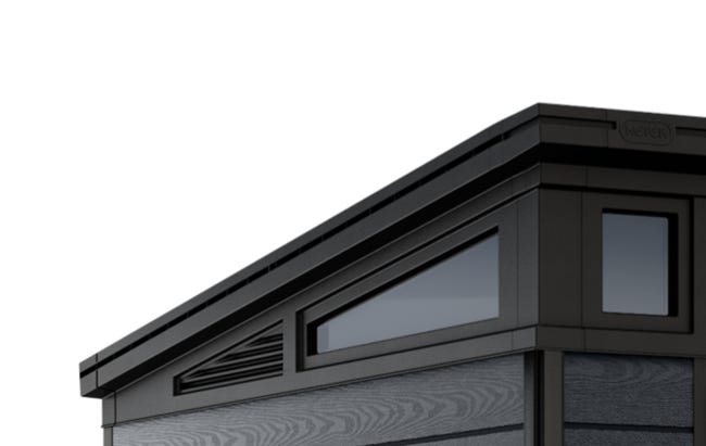 Tendance et pratique, cet abri de jardin monopente CORTINA 97 propose un large espace de rangement de 6m². Sa structure en polypropylène gris foncé offre un effet bois naturel selon la technologie DUOTECH. Cet abri dispose de plusieurs fenêtres pour laisser entrer la lumière naturelle. Une grille d’aération assure un renouvellement de l’air et limite le phénomène de condensation. Si vous souhaitez sécuriser le contenu de votre cabanon, il est possible de le cadenasser grâce à sa porte qui est verrouillable (cadenas non fourni). Il résiste au froid, à la chaleur et à toutes les intempéries. Pratique, il ne vous demandera aucun entretien. Le plancher inclus protégera vos accessoires de l’humidité et de la boue. Son accueil incliné facilitera le rangement des articles avec roues. Le toit supporte jusqu’à 150 kg/m2. Cet abri de jardin est simple à assembler et garanti 10 ans. Dimensions produit monté L277 x P218 x H202 cm.