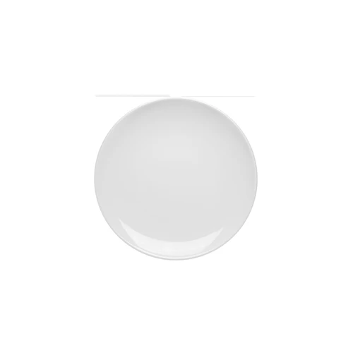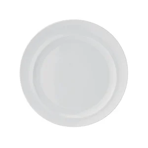 Cette assiette à pain sans bordure est fait de porcelaine blanche