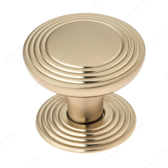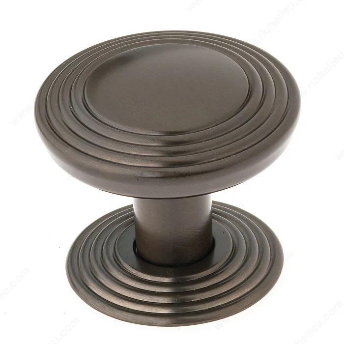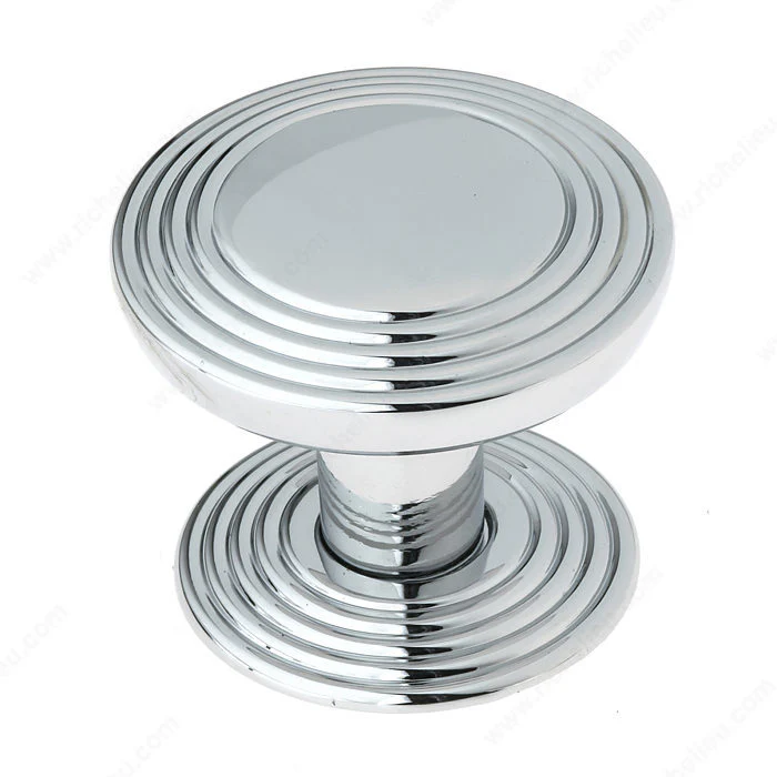 Le disque convexe et lisse qui orne sur la tête ce bouton en métal, est cerné d’un motif linéaire en palier qui s’agence à une plaque arrière pour ajouter une note élégante à votre meuble.