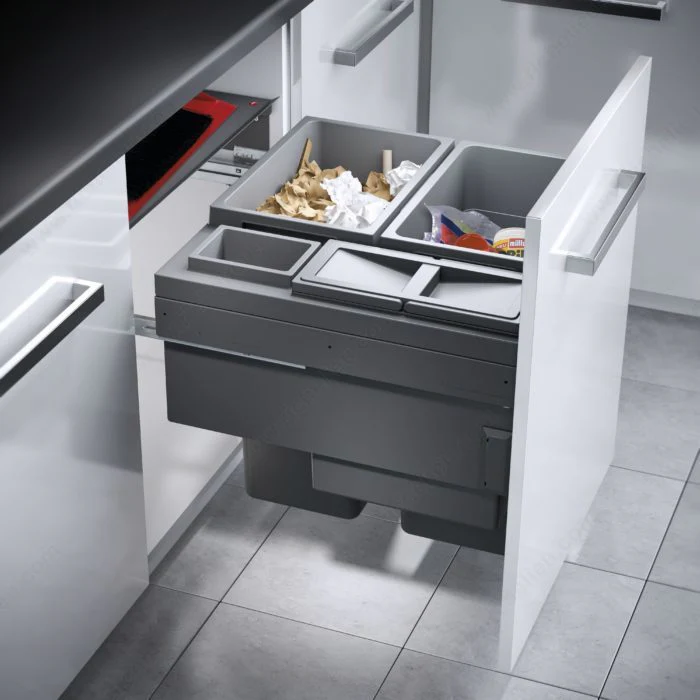 – Coulisses à fermeture amortie à surextension facilitant l’accès aux bacs à usage robuste