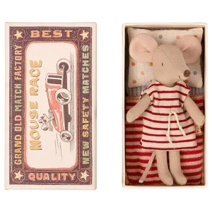Quand le chat n’est pas là, les souris dansent. Mais pas chez Maileg. Chat et souris rivalisent ensemble d’énergie et de prouesse à l’école de danse. Miss Kitty a des aimants sur les mains et un pied, tandis que Little Miss Mouse a des aimants sur ses pattes pour pouvoir tenir les poses sur la barre. La nuit, elles s’enferment dans la petite boîte à chaussures pour s’endormir.