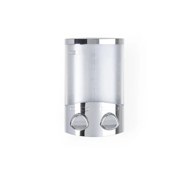 La série de distributeurs de savon et de douche Euro sont de belles solutions pour le problème d’encombrement de bouteilles. Le distributeur double Duo est facile à installer et à utiliser. N’oubliez pas d’accrocher votre rasoir ou vos houppettes de douche sur les crochets intégrés cachés !