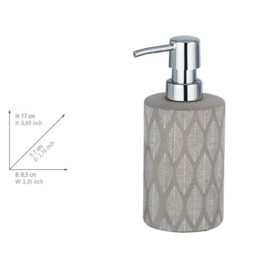 La belle série d’accessoires de salle de bain Tupian de WENKO apporte un charme tout nouveau à la salle de bain. Les accessoires sont fabriqués en céramique haut de gamme et imprimés d’un joli décor de feuille en gris très poétique. Le beau distributeur de savon peut être rempli au choix de 300 ml de savon liquide ou de lotion de lavage, et rechargeable selon vos propres besoins. Une légère pression sur le bouton de dosage délivre la quantité souhaitée de savon ou de lotion . Le pratique distributeur de savon est également parfait pour la cuisine, par exemple pour le liquide vaisselle, près de l’évier. Remplissez-le tout simplement de liquide vaisselle et vous pouvez vous débarrasser de vos anciens flacons en plastique. L’original distributeur de savon de WENKO peut parfaitement être complété par le gobelet porte-brosses à dents, la boîte universelle et l’ensemble WC Tupian. Ainsi, vous pourrez créer une ambiance totalement nouvelle dans votre salle de bain ou WC d’invité.