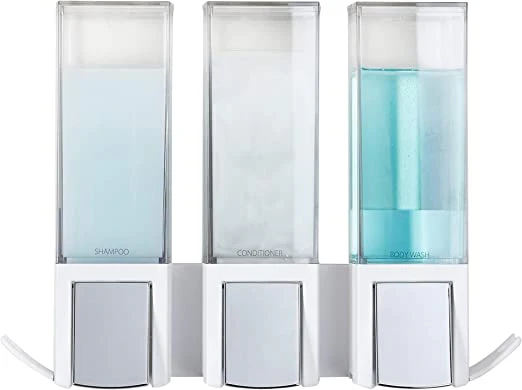 Les distributeurs de douche CLEVER offrent un nouveau look avec une touche moderne. Facilement et d’une seule main, distribuez des liquides de douche en appuyant sur un levier. Accrochez soigneusement les rasoirs ou les luffa de douche aux crochets pour accessoires. Le distributeur de douche double CLEVER stocke parfaitement votre shampoing et gel douche préférés !