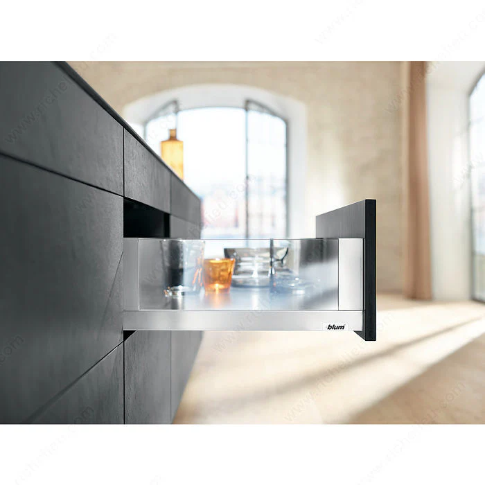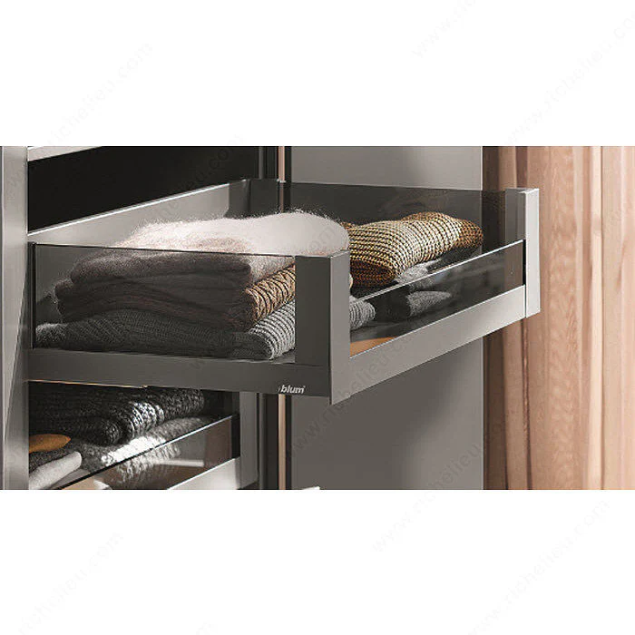 La conception de ces côtés de tiroir permet de retenir l’insertion latérale en verre afin d’assurer un côté de tiroir sans obstruction
