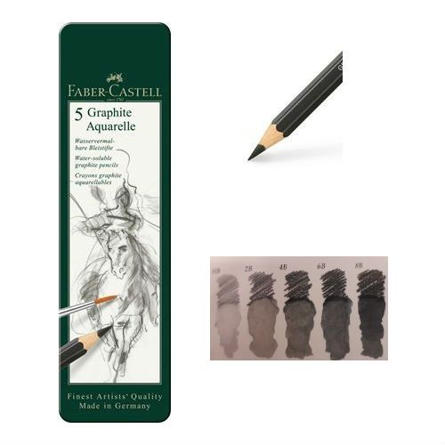 L’ Etui 5 Graphite Aquarelle de Faber Castell, Made in Germany en métal contenant: