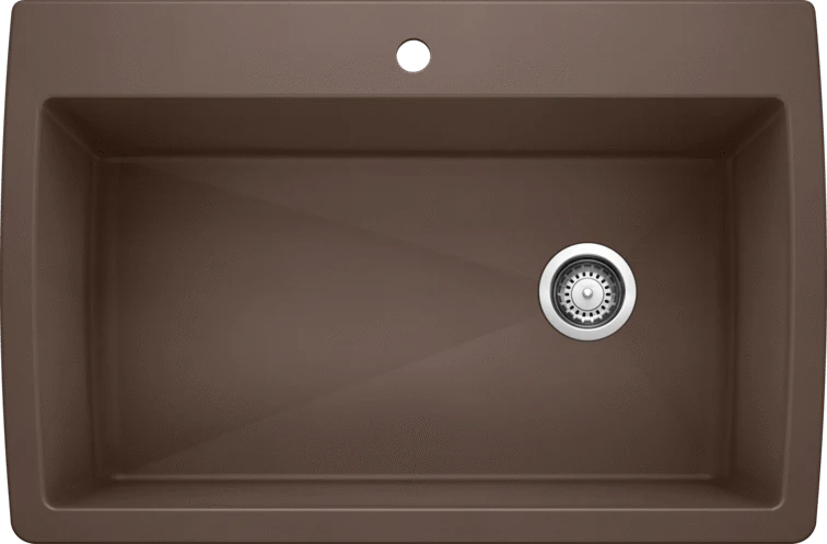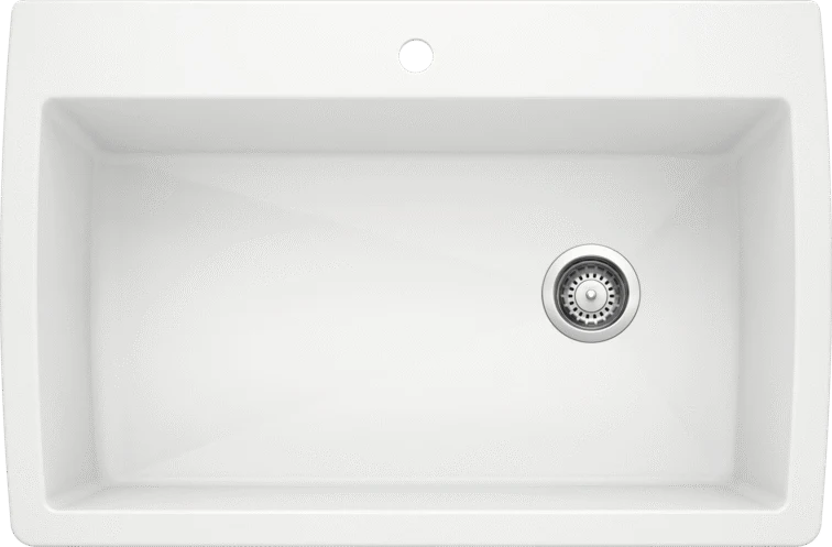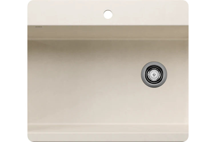 Évier à cuve unique extralarge. Les angles de cuve à faible rayon de courbure optimisent sa capacité. 6 ouvertures supplémentaires pour accessoires. L’évier SILGRANIT composé à 80 % de granit offre tout l’attrait de la pierre naturelle, en apparence comme au toucher, et résiste aux éraflures, aux taches, aux ébréchures et à la chaleur. En raison de la coloration intégrale du matériau, l’évier SILGRANIT ne ternira pas à la lumière directe du soleil. Il est également imperméable aux produits ménagers acides et alcalins. Grâce à une technologie de pointe, sa surface non poreuse est facile à nettoyer et très hygiénique.