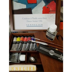 Set complet contenant: 12 demi-godets, cinq palettes de mélanges une éponge et un mini pinceau à réserve d’eau