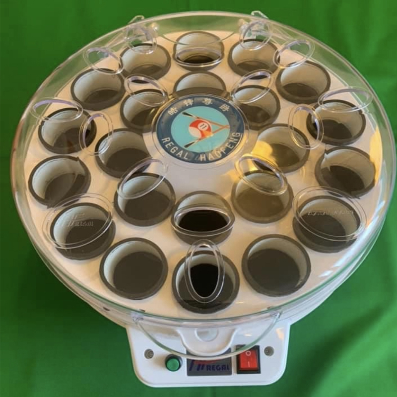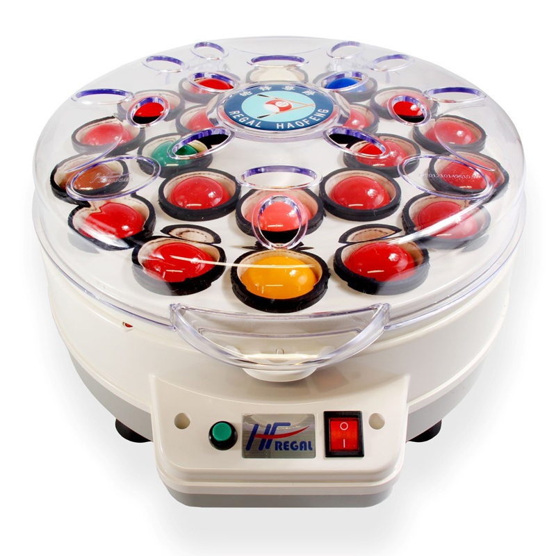 - La Machine Regal Eco permet de nettoyer soit 1 jeu complet de 15 billes Pool Anglais 50.8mm de diamètre ou 1 jeu complet de 22 billes de Snooker de diamètre 52.4mm.
