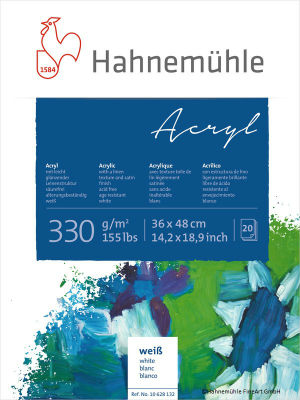 Le Papier Acrylique Hahnemühle, papier 330 g/m², blanc neige à grain « toile de lin » et au rendu satiné.