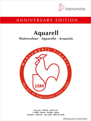 Le Papier Aquarelle Anniversaire Hahnemühle , bloc 15 feuilles ou 50 feuilles pour couleur aquarelle