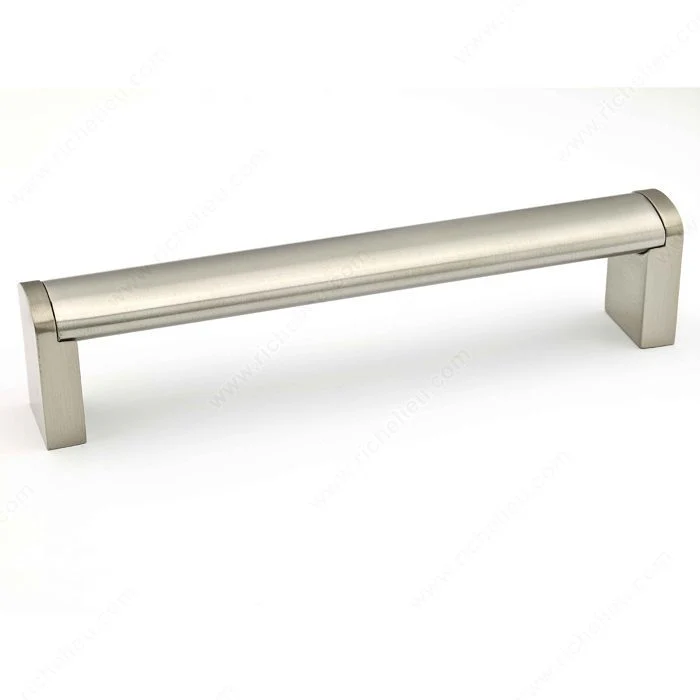 La barre en acier inoxydable de cette élégante poignée est soutenue par des bases métalliques arrondies; idéale pour rehausser en douceur votre mobilier ou vos armoires.