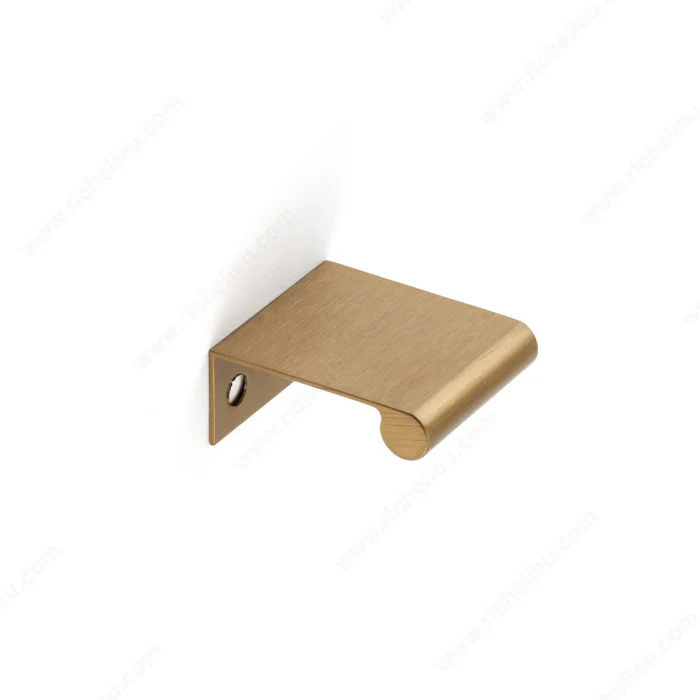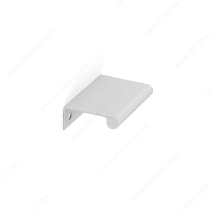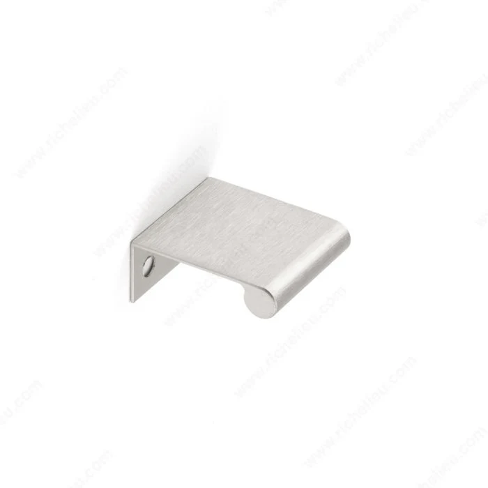 Poignée contemporaine en métal pour rebord Richelieu. Avec ce modèle, nul besoin d’encaver vos rebords de façade de tiroir, ceux-ci fermeront comme un charme!