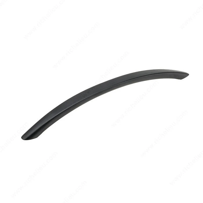 Poignée cintrée métallique moderne Richelieu. Le centre aplati de cet accessoire s’arrondit aux extrémités.