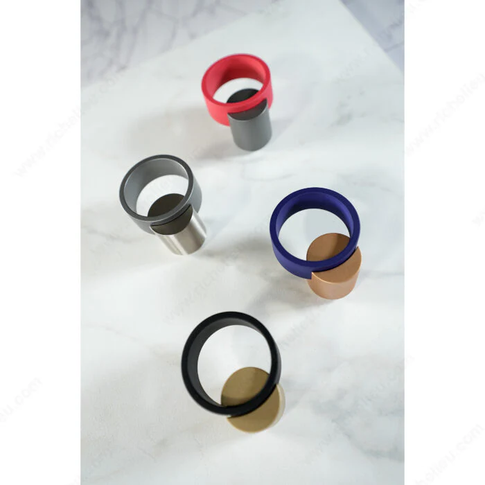 Faisant partie de la collection Rialto, cette poignée moderne présente des combinaisons de couleurs contrastées inspirées des dernières tendances de la mode italienne. La poignée ronde présente des courbes douces dans une combinaison innovatrice. Conçue et créée à Milan, en Italie, cette collection habilement conçue reflète un dévouement au détail et à la précision et un engagement à créer les conceptions les plus avant-gardistes en matière de mode.