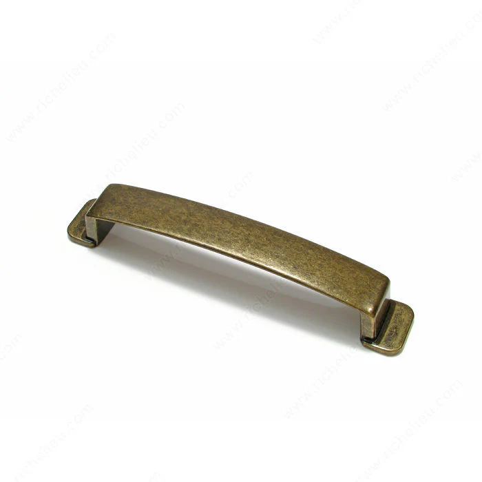 Poignée classique rectangulaire en métal de Richelieu; la prise, à peine arquée, affiche des arêtes adoucies en rondeur et un charme vintage qui se démarquera sur des meubles et des armoires.