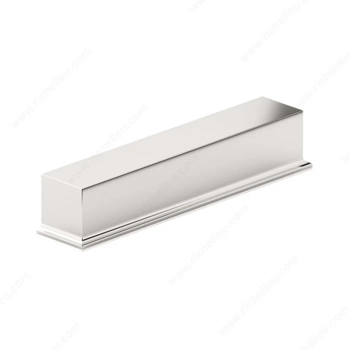 La base de cette poignée en coupelle rectangulaire est encadrée par une bordure ondulée et légèrement évasée pour créer un effet remarquable sur un meuble.