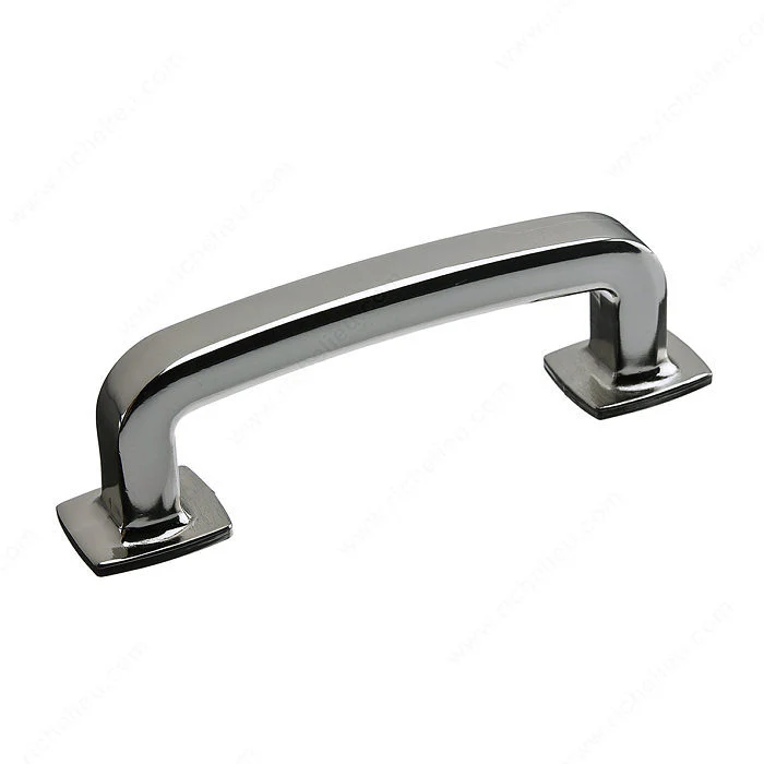 Poignée transitionnelle Richelieu avec angles arrondis et pattes larges. Cet accessoire tout en simplicité embellira instantanément le décor de votre cuisine ou de votre salle de bain.