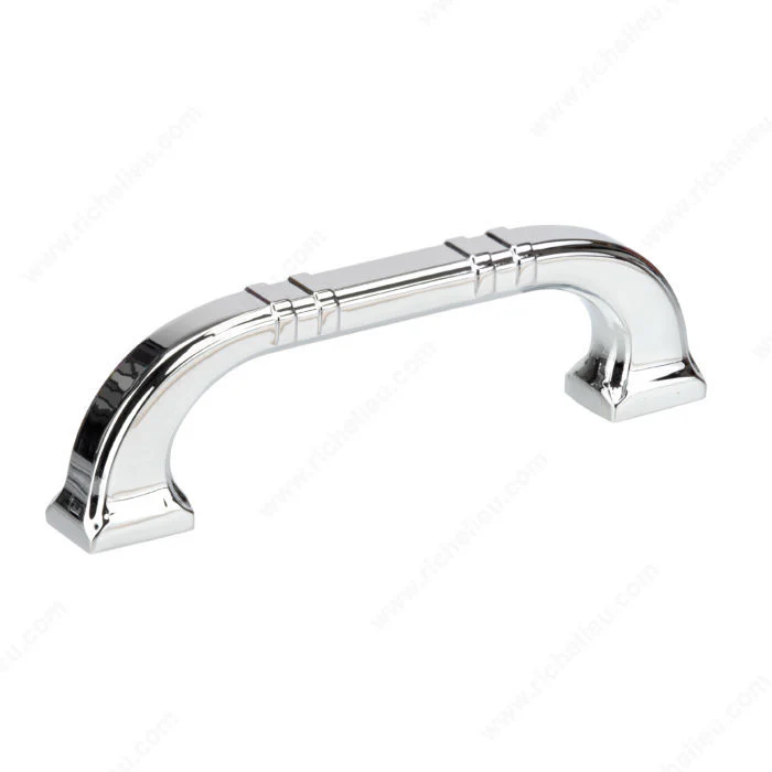 Cette poignée de style transitionnel unique à Richelieu, ornée d’indentations à chaque extrémité et d’une base joliment étagée, créera tout un effet sur meubles et armoires.