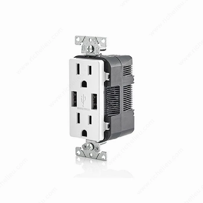 La prise double / chargeur USB inviolable de Leviton dispose de deux puissants ports USB offrant une puissance de charge de 3.6 A et deux prises inviolables de 15 A ou 20 A / 125 V