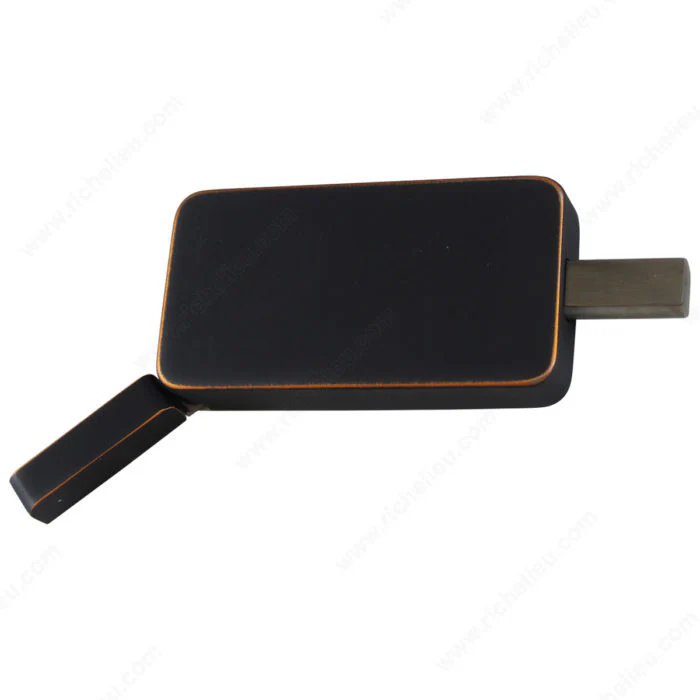 Une serrure privée simple, montée en surface pour les portes de grange, munie d’un levier facile à soulever à l’aide du pouce seulement.