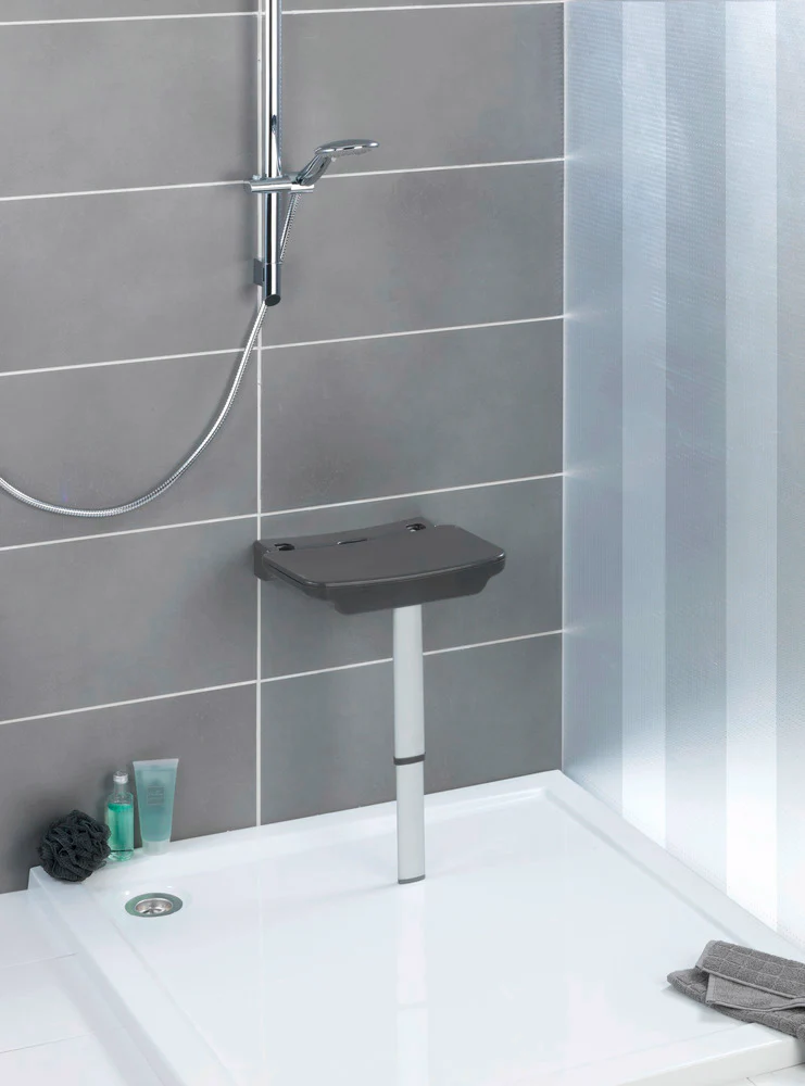 Siège de douche de qualité supérieure, relevable pour un faible encombrement, agréé TÜV/GS, capacité de charge jusqu’à 120 kg