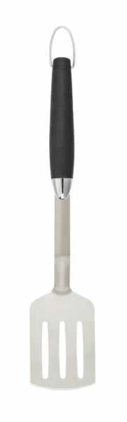- Poignée ergonomique : La poignée élégante noire en plastique TPR de la spatule pour grillades offre une bonne prise en main. Vous pouvez donc utiliser le gadget de cuisine en toute sécurité, sans craindre de faire tomber quelque chose au sol. Les crochets pratiques sur la poignée permettent par ailleurs d’accrocher l’ustensile sur le chariot du grill ou sur un crochet à proximité.