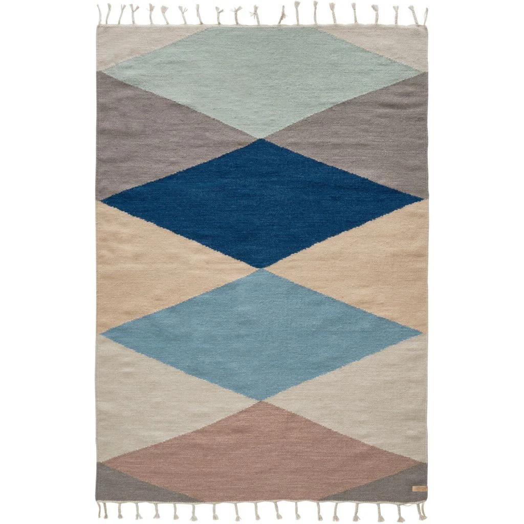 Un tapis graphique, scandinave aux couleurs apaisantes. Parfait dans une chambre ou un salon. En laine et coton.