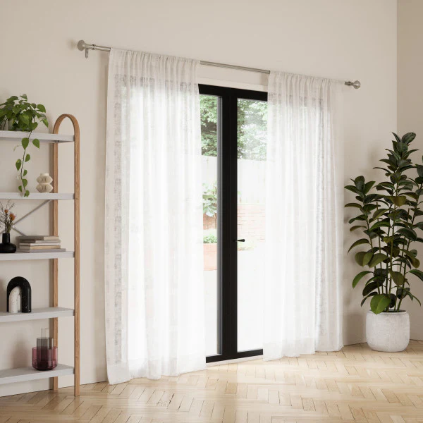 Tringle à rideau moderne et sophistiquée, Ella est une tringle à rideau réglable en longueur, de 2,5 cm de diamètre avec une finition brossée et des embouts en trompette. Extensible et disponible en deux tailles; De 91 à 183 cm ou de 183 à 366 cm, Ella peut s’adapter à une variété de tailles de fenêtres. Fabriquée en acier, supportant un poids maximum de 1 kg, cette tringle à rideau est durable. L’installation est très simple. Cette barre à rideau est livrée avec des supports muraux, les embouts, des vis métalliques, des chevilles en plastique et des instructions de montage.
