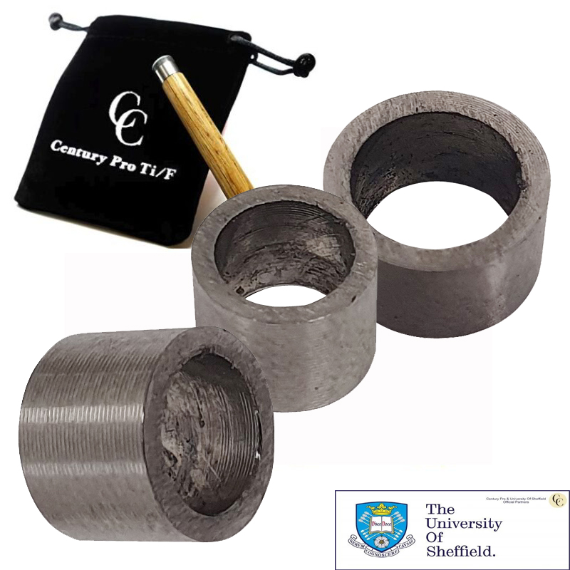 - Découvrez Century Pro Ti-F – La première virole pour queue de Billard Pool Anglais en Titane à faible déflexion au mondeLes normes sportives s’améliorent continuellement à mesure que les progrès en matière d’entraînement, de technique et d’application sont développés et introduits. Cependant, à moins que l’équipement utilisé ne s’adapte à ces changements, les progrès s’en trouvent ralentis, voire s’arrêtent. Le blackball et le snooker ne font pas exception. Le laiton est le matériau de choix pour les viroles de queues de billard depuis plus d’un siècle, mais il est loin d’être idéal. En raison de la relative douceur du laiton, chaque changement de procédé réduit le diamètre de la virole et compromet sa forme. Même un léger polissage à la fin du travail enlèvera de la matière. Cela changera inévitablement votre ressenti et votre façon de jouer auxquels vous étiez habitués. Imaginez une virole où cela ne peut pas se produire. Une virole qui conserve son intégrité structurelle à vie, quel que soit le nombre de fois que vous changez votre procédé. Cette virole est la Century Pro Ti-F.Pourquoi choisir la virole en titane Century Pro Ti-F ?