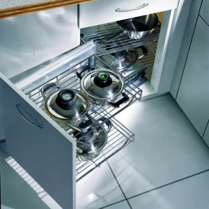 Ensemble Magic Corner avec plateaux en fer chromé