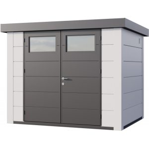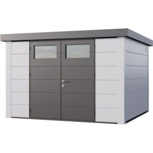 Abri Telluria en acier galvanisé gris blanc 9,8m² avec double porte Eleganto 3330